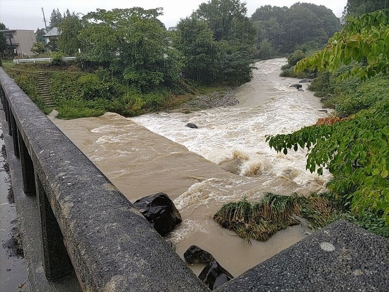 普段の姫川は穏やかな流れなのですが、このようにまとまった雨が降ると一気にその表情を変えてきます。1995年7月には隣の小谷村で氾濫を起こしたこともあり、これ以上強い雨が降ることがなく被害が出ないことを祈るばかりです。