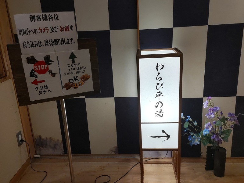 写真には撮りませんでしたが、わらび平の湯の露天風呂に貼っている保温シートを剥がすと
