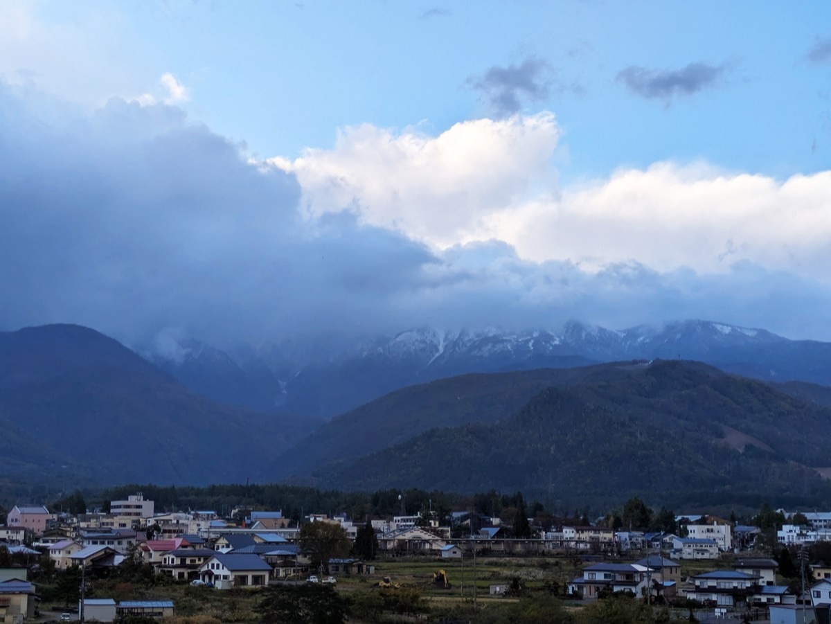 そこでの会話は「北アルプスに雪が積もった!」でした。