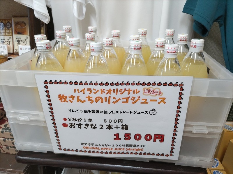 毎年恒例となっております、須坂市のまき農園さんのりんごを使ったハイランドオリジナルの「牧さんちのりんごジュース」ですが、今シーズンも1月1日の元日より売店「スマイルshop898」にて販売しております。