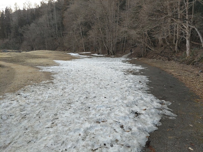 今年の白馬は雪が非常に少なかったとはいえ、大出公園には日かげになる場所が多く