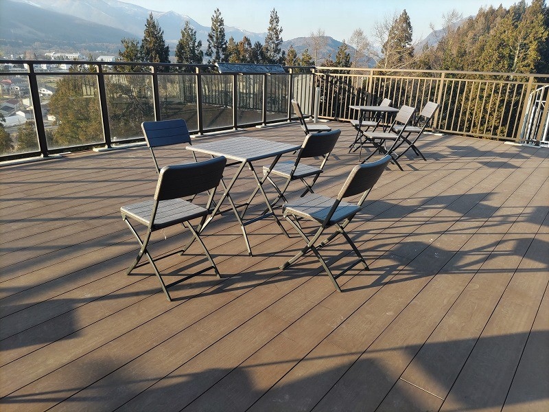グリーンシーズンのスタートに合わせて、空やまテラスにイス・テーブルを再びお出ししました。