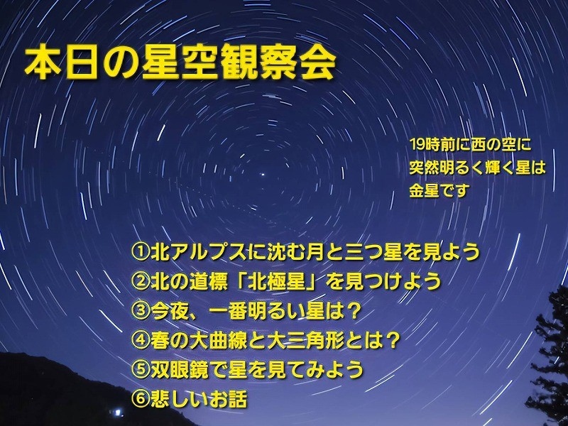 今シーズンは新たにスタッフよーいちによる星イベントの実施が決定いたしました。