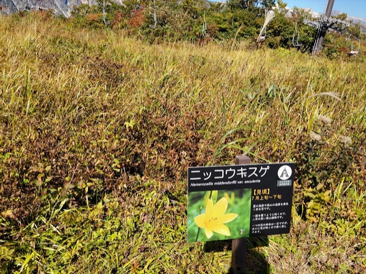 高山植物園には、6月から10月までの間300種200万種の様々な高山植物があり楽しむことができます。コマクサやニッコウキスゲなど数多くの花々が咲き誇るのですが、さすがにこの時期は咲いている花も少なくなってきました・・・