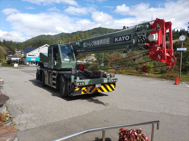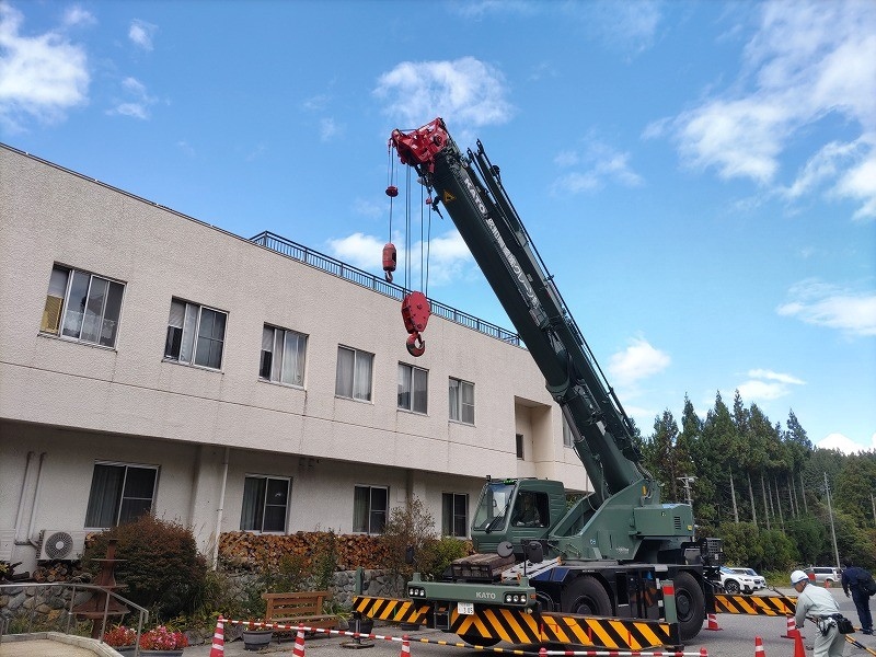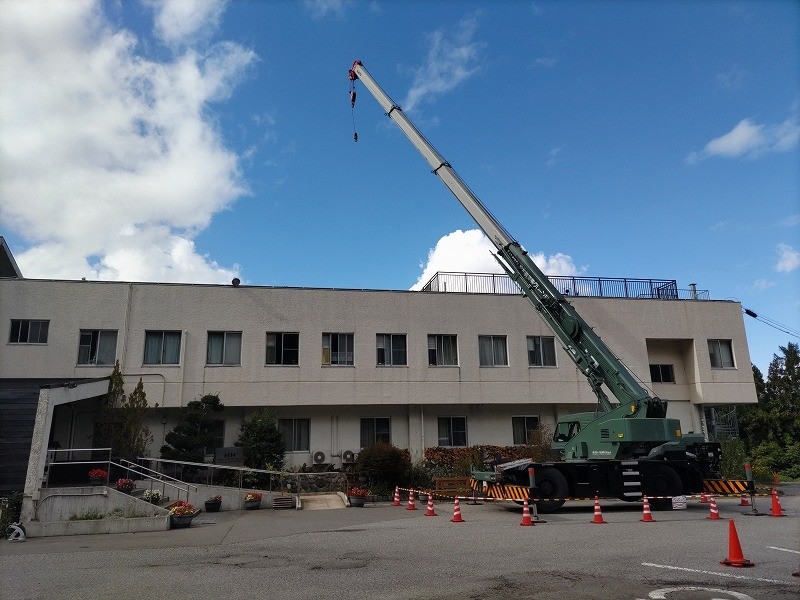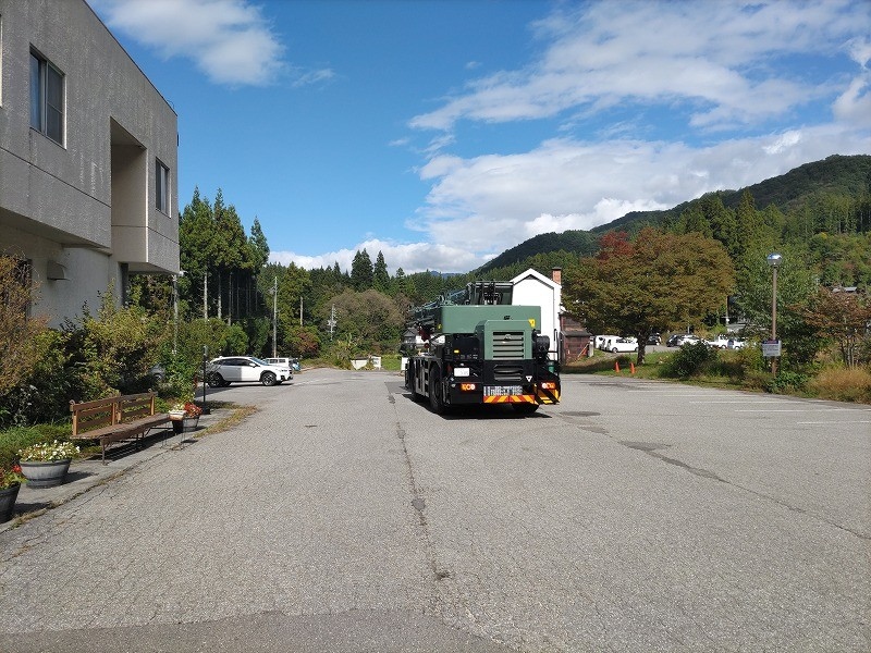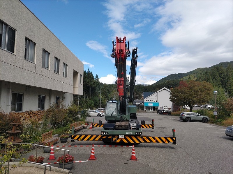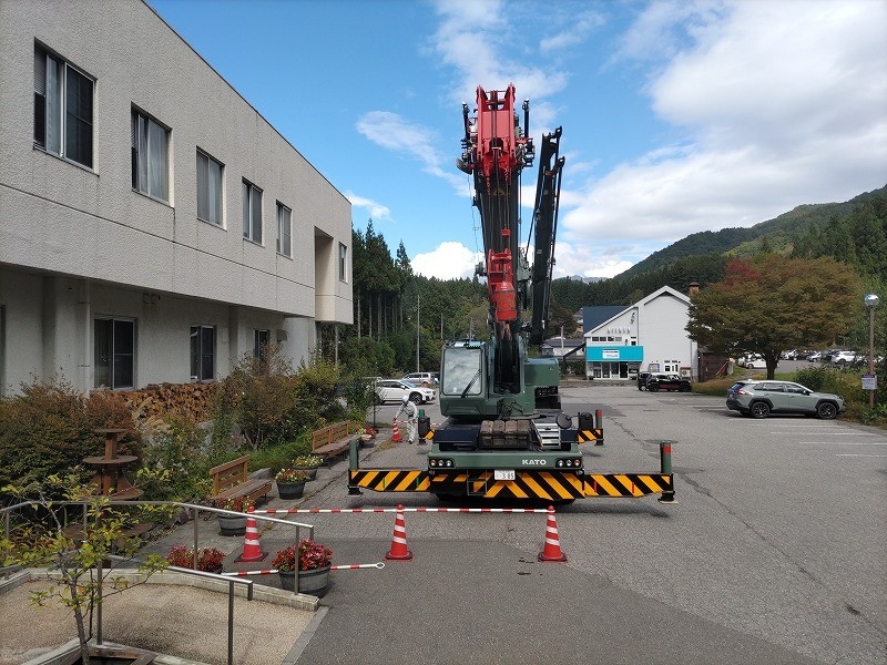 何回かこのようなクレーン車による作業がございます。その際は、駐車場の一部を封鎖して作業を行うことが